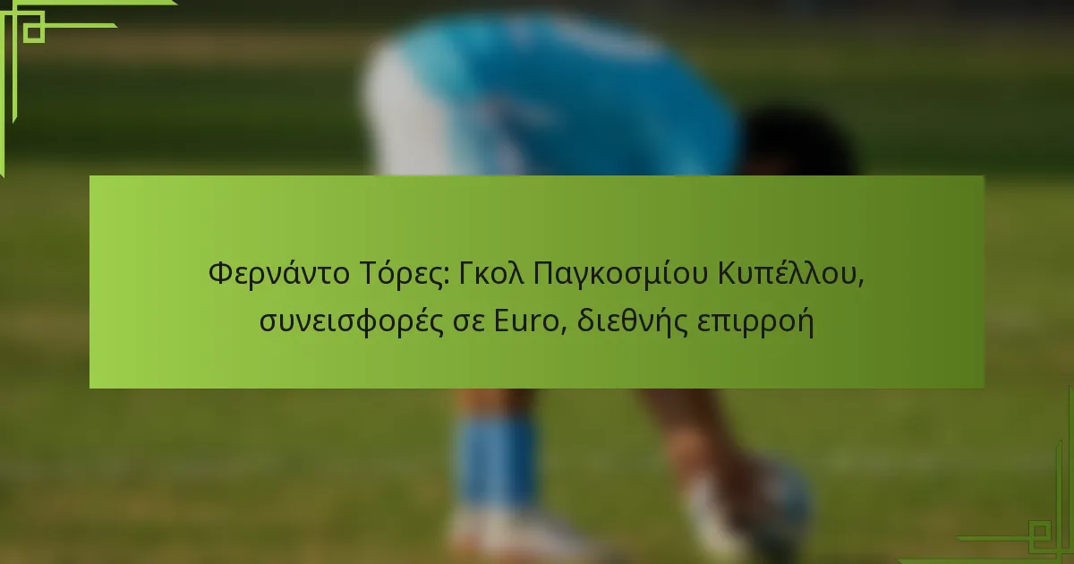 Ο Φερνάντο Τόρες, μια καθοριστική φιγούρα στο διεθνές ποδόσφαιρο, άφησε το στίγμα του με την ισπανική εθνική ομάδα μέσω κρίσιμων εμφανίσεων σε μεγάλες διοργανώσεις. Σκόραρε το μοναδικό του γκολ σε Παγκόσμιο Κύπελλο κατά τη διάρκεια του Παγκοσμίου…